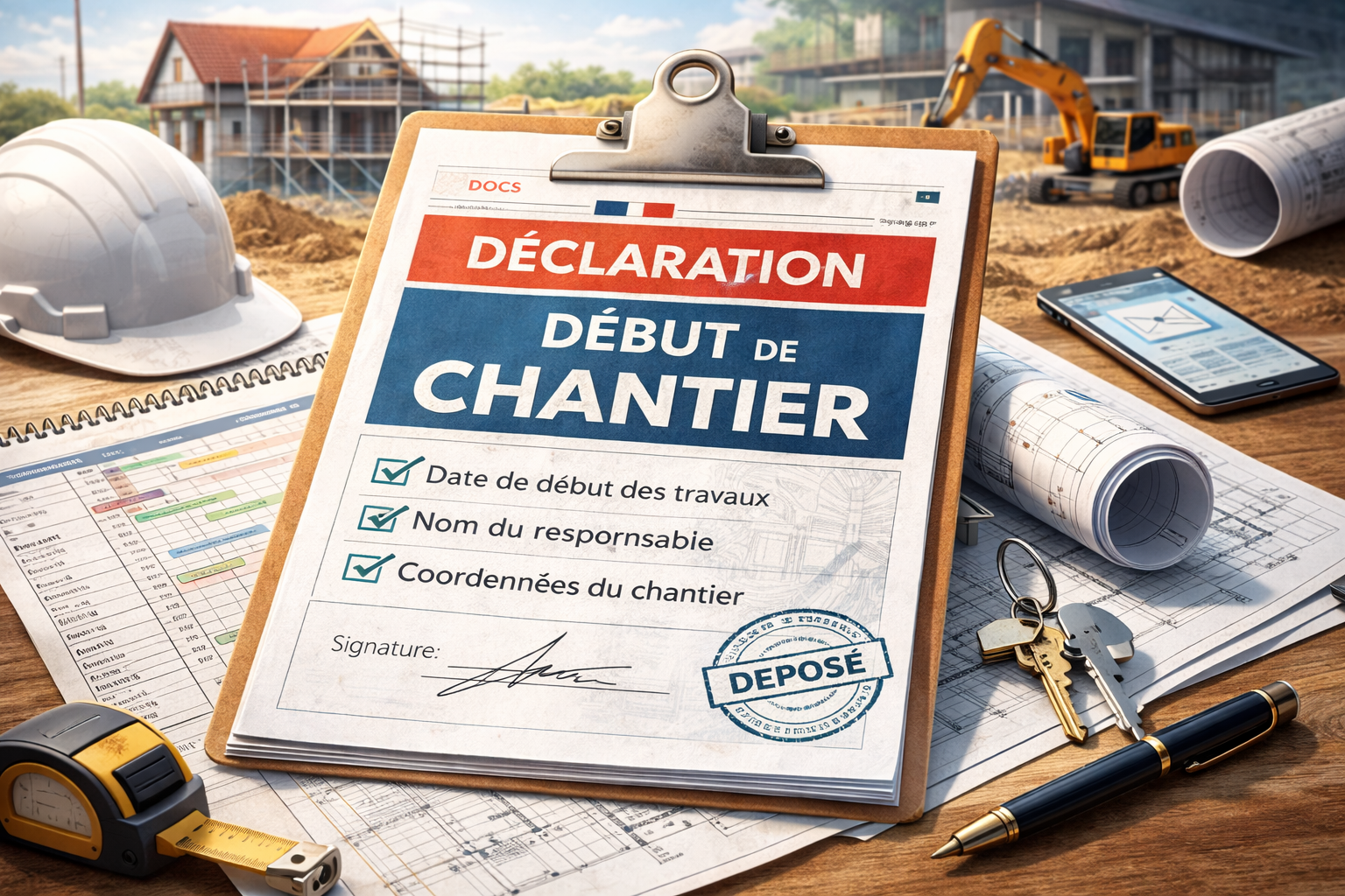 Déclarer officiellement à la mairie le démarrage du chantier après obtention d’un permis.